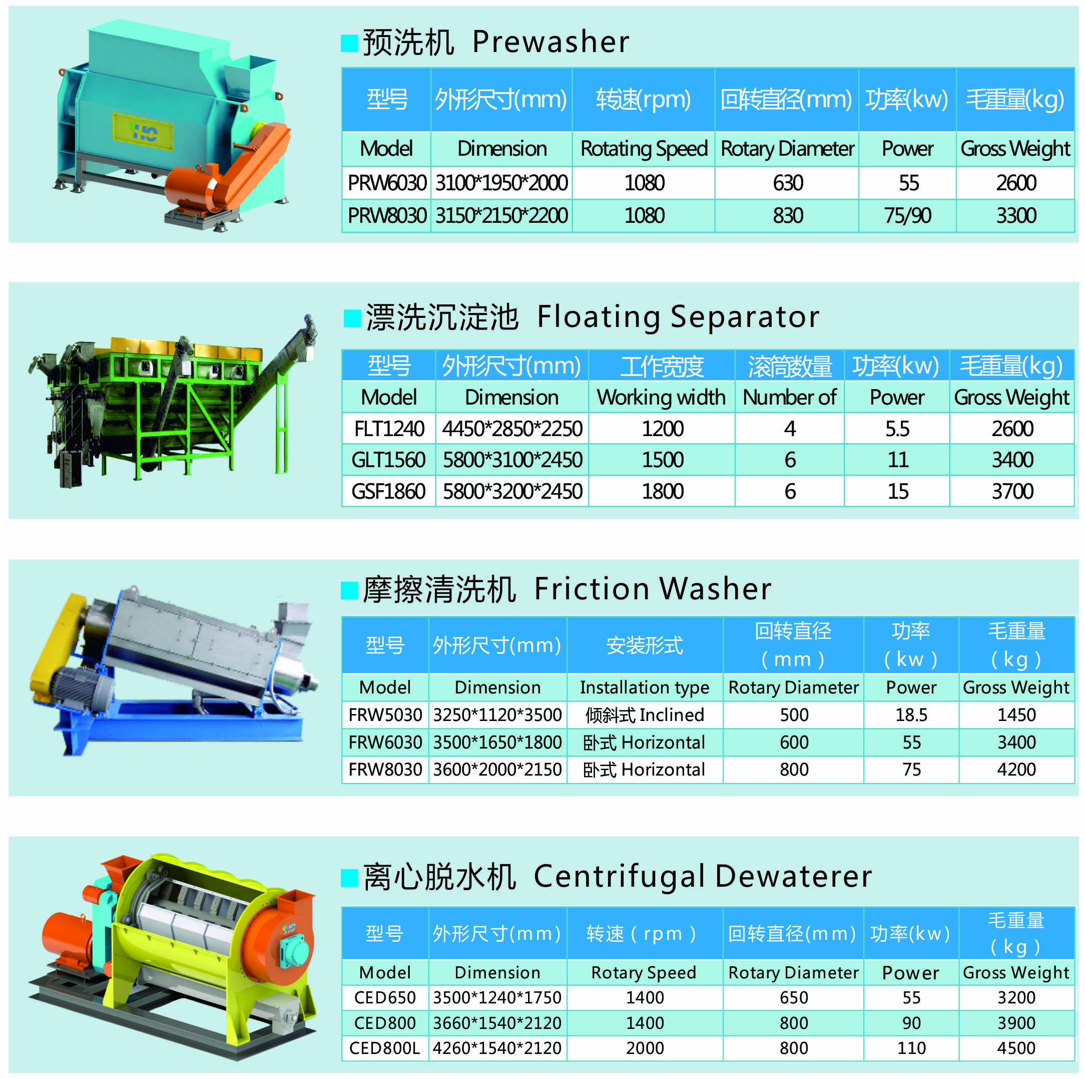 根據(jù)根不同生產需求廢舊塑料回收再生生產線可能包括如下設備